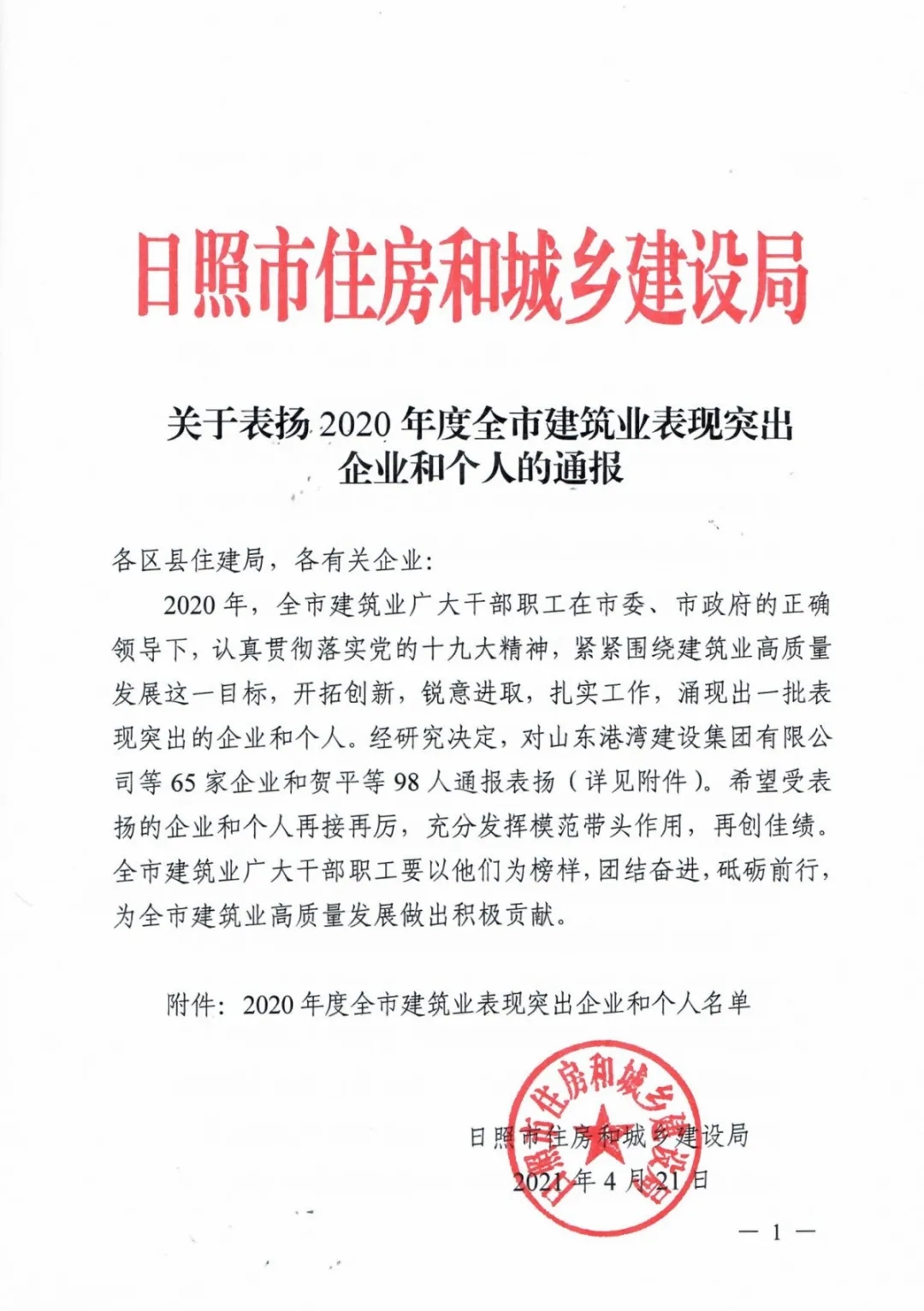 日照市建筑設(shè)計(jì)研究院有限公司榮獲2020年度日照市建筑業(yè)表現(xiàn)突出企業(yè)等多項(xiàng)榮譽(yù)稱號
